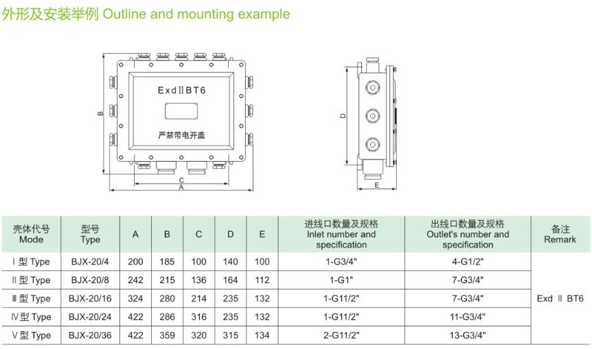 ●增安型外殼可根據(jù)用戶要求采用不銹鋼制作,用戶如有要求請注明;